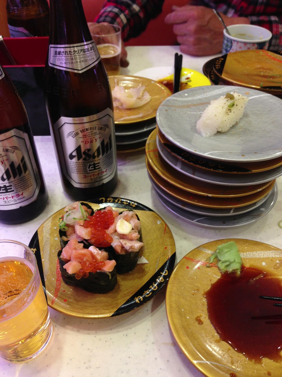 ネタ明らかに鮮度が悪い感じでしたね~。サーモン三種盛りというやつは美味かったです。